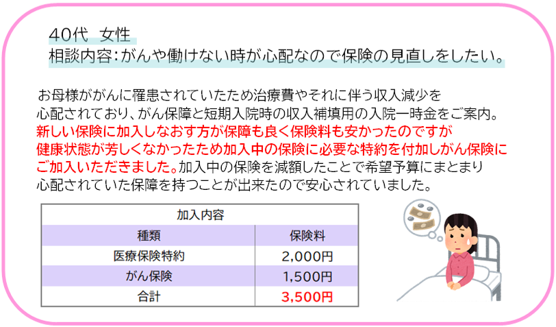 必要な保障をご案内致します。そして給付データや患者様の声を元に