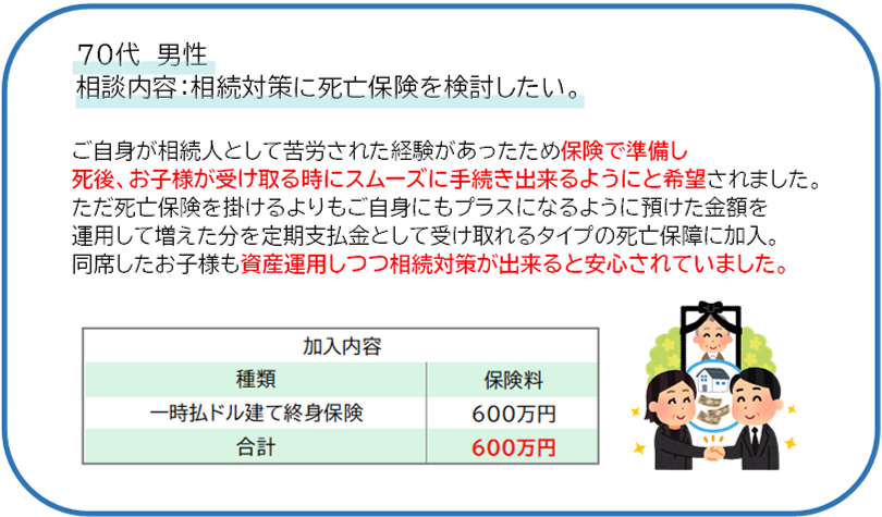 給付状況をお店で収集したデーターを元に必要保障の入れ替えを提案しています。